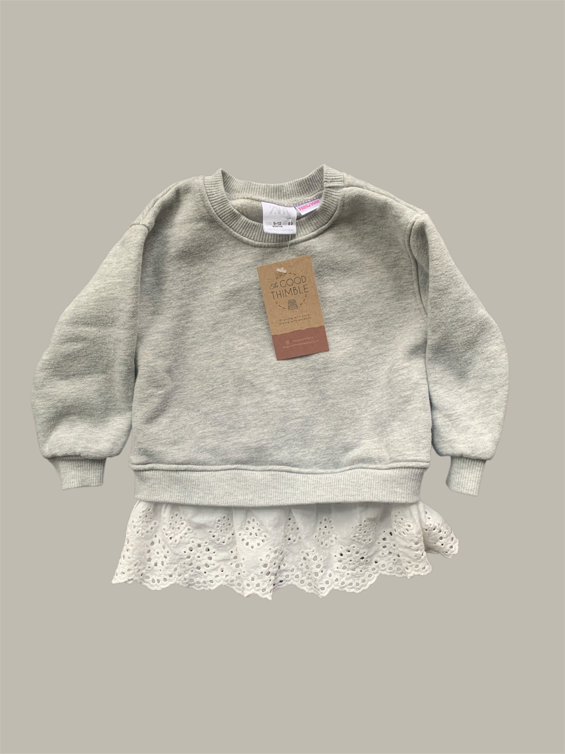 Grey Zara Sweater with White Lace Trim (9-12 m)